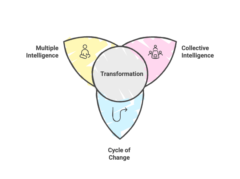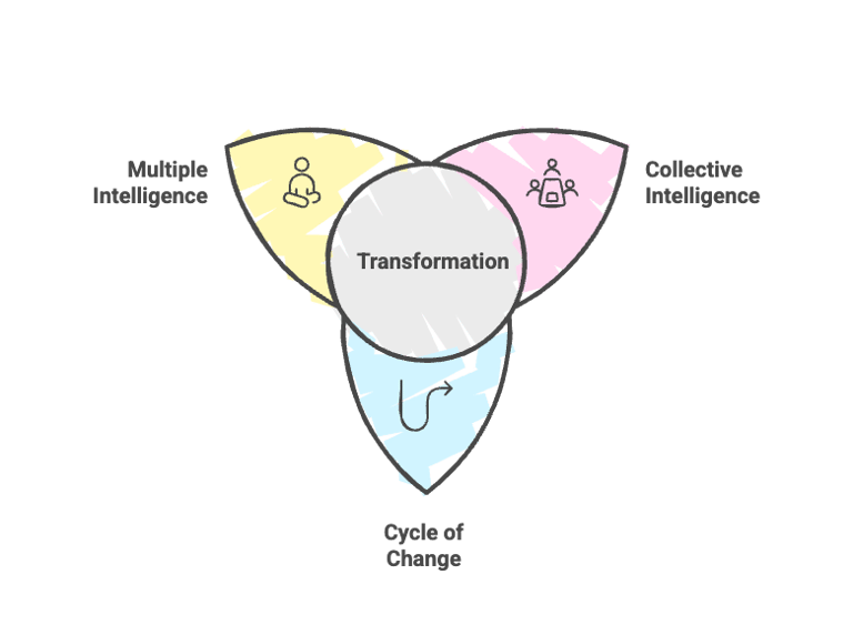 Our support is based on the latest discoveries in the psychology of change, neuroscience, and somatic techniques, as well as best practices in collective intelligence and participatory leadership.